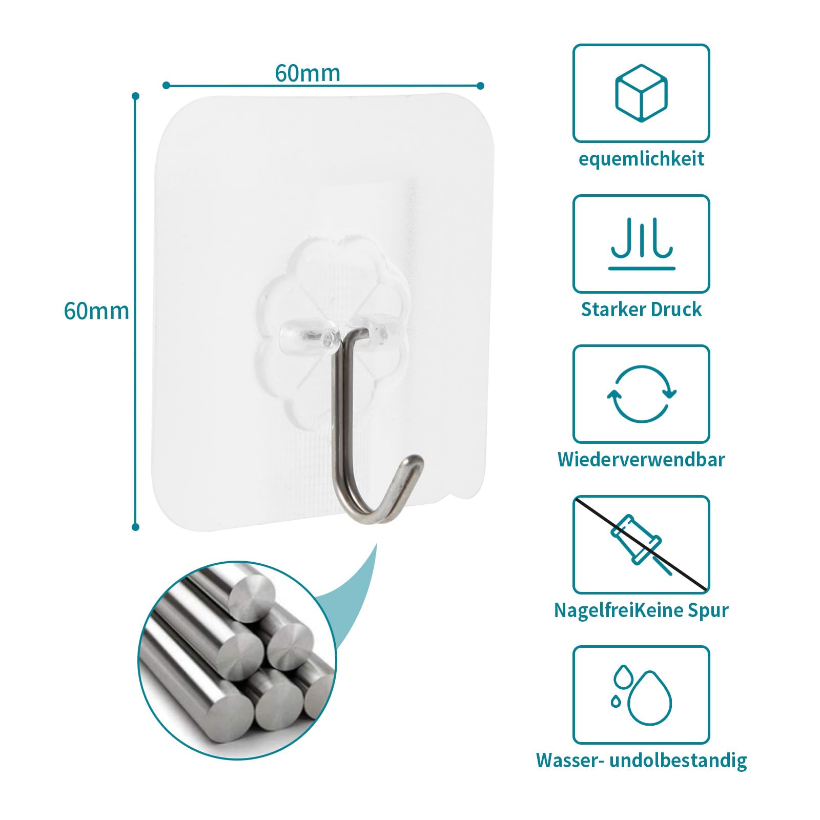 Neu: Neuer, unbenutzter und unbeschädigter Artikel in nicht geöffneter Originalverpackung (soweit eine Verpackung vorhanden ist). Country of Origin: China Department: Adults, Chef, Cook, Man, Woman, Type: Adhesive unbedruckter Karton oder Plastikhülle. Auf Lager: (10 Stück) Selbstklebende Haken, max. 15 kg Tragkraft, transparent, wasser- und ölbeständig, für Handtücher in Bad, Küche, an Decke, Wand oder Tür. zum besten Preis, YT-MN-07510. Eine schnelle Lieferung überall in Deutschland möglich Wandhaken Selbstklebend Haken Selbstklebend 2 X Selbstklebende Haken Für Wand & Bad - Mehrzweck-Aufhänger Für Schlüssel, Handtücher & Mehr Smart Outdoors Klebehaken Folie Selbstklebend Weiß Matt Weitere Einzelheiten im Angebot des Verkäufers., Hook Style: Tail, Material: Metal, Plastic, Item Length: 6 cm, Colour: Clear, Brand: Unbranded, Mounting: Wall Mounted Care Instructions: Clean with Warm Water Number in Pack: 1-20, Style: Modern Stück selbstklebende Haken, doppelter Badezimmer-Handtuchhaken für Küche, Badezimmer, Schrank...